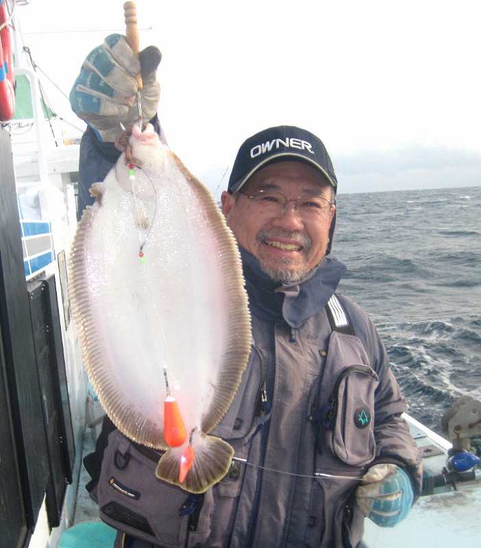 ナメタの釣果は8人皆で27枚でした。(^o^)/~ 型は大きいので45cm位でしたが、 それにメンバー全員が顔を見ることができましたので、 小倉さんも型の良いナメタを釣ってました。 そして千代ちゃんも最後の流しで良い型のナメタをゲットでした。(^o^)/ これが釣れた時の仕掛けと集魚パーツの雫ちゃんです。\(^o^)/ <strong><ins><a href="http://turibaka.ddo.jp/MyShop/urimono/kareisikake/kozukisikake.htm" target="_blank"><span style="color:#0000FF;">釣りバカSHOPナメタ仕掛け&集魚パーツ</span></a></ins></strong> |