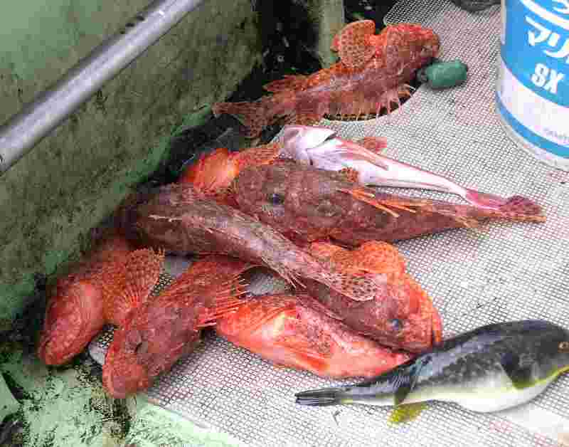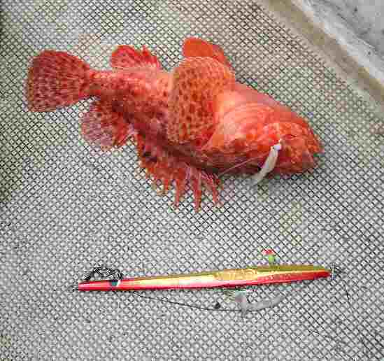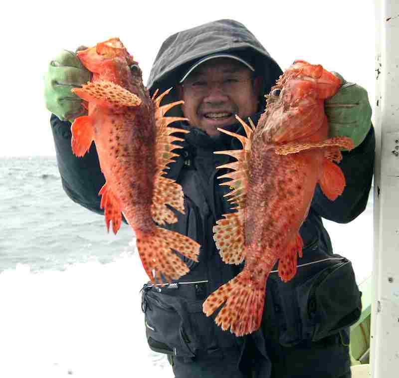 3回連続で時化のために出港中止が続いていた。 しかし4回目で、やっと出ることが出来た。(^-^)/ 満を持してのカサゴ釣り。 朝6時に今別漁港を出港。 海は凪ている。 宇鉄沖まで行って「OK!」の合図で仕掛けを投入。 早速根掛り。\(><)/ すぐに外れた。(と思っていた) 自分を含めて全く当たりがない。 「上げ!」の合図で、仕掛けを回収。 なんとハリが折れていて、勿論えさも付いていない。 これでは喰うはずもない。(*_*;) そして次のポイントへ。 潮が早くて底をとるのが結構大変。 ジグを「KinJig Long」の200gに交換する。 沈みが早くて底も取りやすくなった。 しかし。さっきと同じで当たりがない。 さらに新しいポイントへ。 さっきよりも10m程深いポイントだ。 しかし、さっきと違って潮が早くなく底もしっかりと取れる。 こんどは喰った。 カサゴ特有のゴツゴツッ!と来てから、 グイグイ!と引っ張るまで待って竿を持ち上げる。 ズッシリとした重さが伝わる。\(^o^)/ 途中のバレを気にしながらも第1匹目が上がる。 まずはホッとする。 そして、ジグの使い勝手も解ってきたのが嬉しい。(^-^)/ 他の人たちも喰い出して入食い状態が続く。 中々コツをつかめなかった釣り爺ィさんにも嬉しい初カサゴが釣れた。 本日の最大、40cmオーバーも上がった。 千代ちゃんは、大きなビニール袋を出してカサゴをしまいだした。 そこらじゅうがカサゴだらけになってしまったのだ。\(^o^)/ そのあと、10時頃になって風が西向きになった途端に吹いてきた。 そして極端に喰いも悪くなってしまった。\(><)/ あと1時間を残して早上がり。 結局、5人で50匹のカサゴが釣れた。 あと、水草が5枚くらいと沖メバルやカナガシラなども釣れた。 竿頭は、15匹のカサゴ。 千代ちゃんは嬉しいツ抜けの11匹。 私はと言えば、えさの選択が少し違っていて、(先頭の写真) カナガシラと、フグを入れて、やっとののツ抜けの11匹。(^-^)/ 今年最後の釣りを締めるには、 充分な結果で終わることが出来た。V(^0^)V えさの選択に付いては、メルマガで説明します。 メルマガの登録、購読申込みは下からです。(^-^)/ http://www.mag2.com/m/0000217396.html PR |