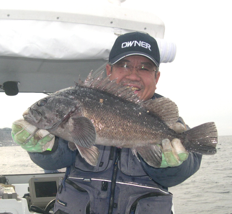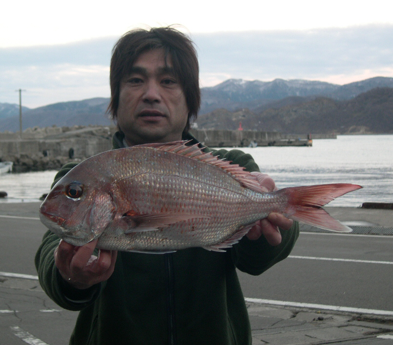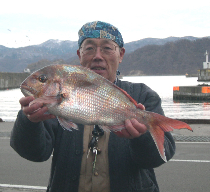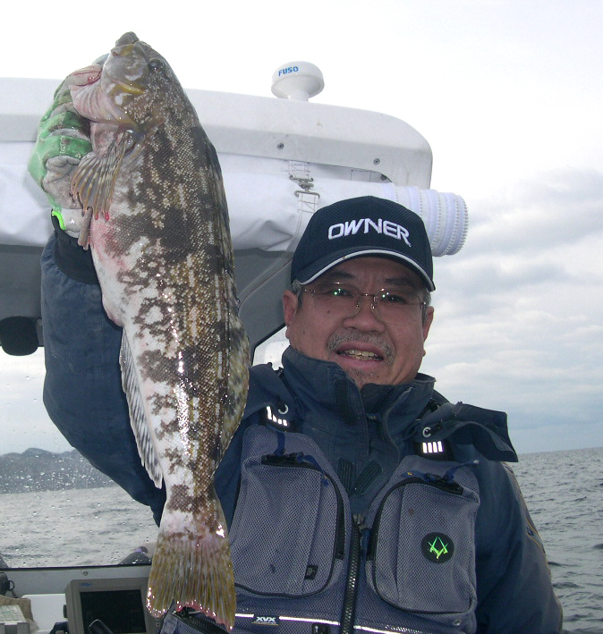 真っ直ぐに権現崎沖の80mラインを目指します。(^-^)/ 海は少しのウネリしかなく快適に進むうちに、 権現崎から先に出たら、波が出始め、80mラインはガッパガッパ。 それでも、魚探には明らかにタイの反応がクッキリと出ている。 デカ真ダイ様にお別れを言いたくて、仕掛けを降ろす。 最初に小野さんがヒット! 難なく60弱をゲット。(^-^)/ そして、むさしさんと爺ィさんにダブルヒット! 残念な事に、むさしさんは途中でフックアウト。(*_*;) そして爺ィさんは、もう少しのところでラインブレイク。\(><)/ あれ~!と海を見るとタイの姿が見える。 そして少しずつ浮いてきて水面へ。 離れたところに浮いたタイが段々に船に近づいて来る。 そしてしっかりとタモの中へ入る。\(^o^)/ そのあとは、反応がずうっと出ているが全く喰い付かない。(*_*;) 潮昇りをしようとするが、船が波に叩かれて進めない。\(><)/ 深場を諦めて先日入食いの浅場へ向かう。 途中60mラインでよい反応が出た。 直ぐに停まって、流すがあたりは無い。(*_*;) そして、根魚のポイントを通過したらここでも良い反応が出ている。 流すと綺麗なアブラメといくらかのクロソイが釣れた。 アブラメは黄金のアブレメとでも呼びたくなるほどに金色に光っている。 そして例の浅場へ、そしてら直ぐに来た!(^-^)/ しかし鋭い2段引きは無い。 上がったのはクロソイ。 軽く40cmオーバーのまあまあの型だ。 良しとしよう!\(^o^)/ そして明らかにタイの群れの反応が出てもタイは釣れずに、 クロソイやアブラメが釣れる。 そんな時、大きな当たりと言うか、重い魚が掛かった。 グングン!と首も振る。 しかしデカ真ダイほどの引き込みは無い。 水面に姿を現したその姿を見て、 爺ィさんが、「何だこりゃ~!」と声を上げながらタモを入れてくれる。 ドデカアブラメだ。 測ってみたら52cmジャスト。JFCの新記録だ。V(^0^)V そうこうしてるうちに、風が収まってきたのでまた深場へ。 しかし、権現を交わした深場は波が収まっていない。 そして、反応の上を流すが当たりは全く無い。(*_*;) そんな事が何回も続き、諦めて又浅場の根魚を狙う。 潮が停まってしまって根魚さえも喰いが悪くなってしまった。 これではまだ上がれないと、又例の入食いポイントへ向かう。 こんどは30cmオーバーのチダイが喰った。(^-^)/ そして同じくらいの真ダイも喰いだした。\(^o^)/ 喰いはかなり渋く、連続して当たりは出ないが、 潮昇りをして反応の上を流すとポツリポツリと喰い付く。 そして暗くなってしまう前の3時半にストップフィッシィング。 結局は真ダイが2枚、チダイと小ダイが8枚。 アブラメ・ソイが20匹くらいで終了。(^-^)/ 無事にタイ様からのメッセージを頂きました。 「もうお前達と遊んでる暇はない。もう来るな!」 ハイハイ!解りました。渡された引導はしっかりと持って帰ります。 今年一年本当にありがとうございました。m(-_-)m 来年も又宜しくお願い致します。\(^o^)/ 今年一年、私と一緒にに遊んでくれた方々、お世話になりました。 本当にありがとうございました。m(-_-)m 来年からは、遊漁船として一緒に釣りをさせていただきますが、 同じように楽しい釣りをするために宜しくお願い致します。。\(^o^)/ PR |