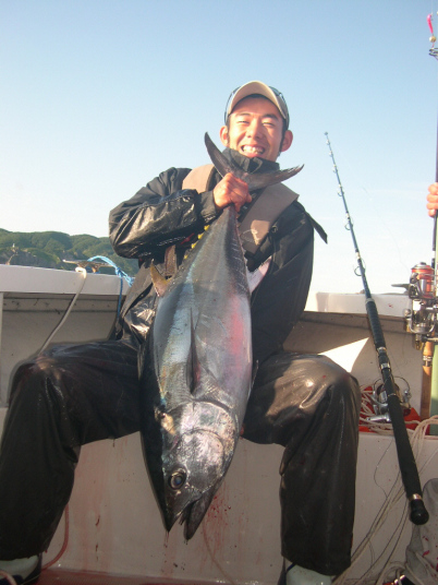 小泊沖で約18キロの本(黒)マグロをゲットです。