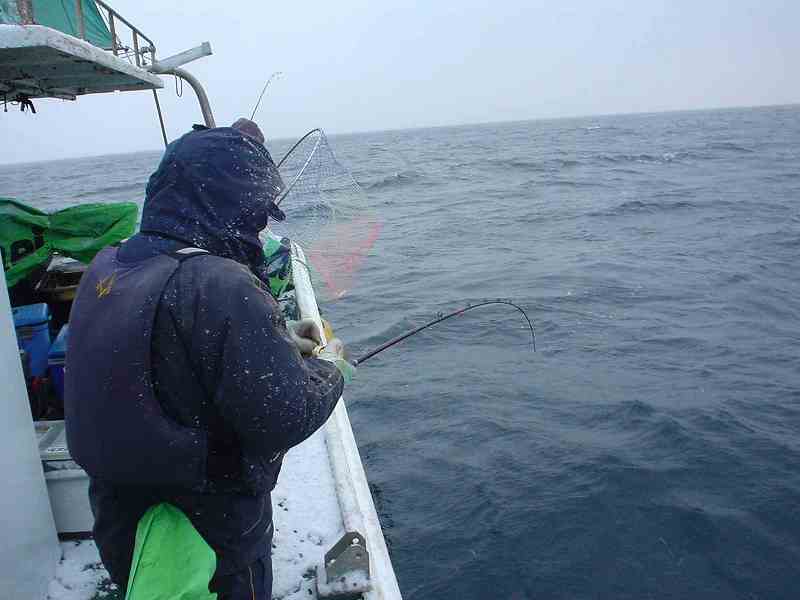 真冬の釣りナメタ釣り。 なぜこんなに寒いのにナメタを釣りに行くのか?(*_*;) と思われる方もいるでしょうね。(^-^)/ まず三沢という太平洋側のつりは、西風が多少吹いても、 よほどのことが無い限り中止になりません。 今の時期の沖釣りにとって、まず中止になるのと、 中止にならないのの違いは、結構大きいんです。(^-^)/ と言うのは、楽しみにしていた釣りに出られるのは嬉しいし、 出られると思えばその準備にも熱が入ります。 つりは準備が一番楽しい!なんて良く言うでしょ。\(^o^)/ しかし半分以上中止になるのが解っていると、 結構いい加減な準備の仕方をしています。(私だけ?)(^-^)/ だから期待度が違うんですね。(^-^)/ そして対象魚が超高級魚だと言うこと。 正月前後は1枚が1万円から大きいと2万円です。(^-^)/ だからといってそれを売るつもりでは無いんですが、 他の人がそれだけの金額を出しても食べたいほど美味しいんです。 まさに、ナメタがないと正月が来ないと言う南部の人たちの気持ちが ナメタを今の時期に食べた津軽の人たちが、よく解ったと必ず言います。 私も、私のかみさんもそうでした。(^-^)/ 去年の暮れの30日に釣ってきたナメタを大晦日と正月に食べました。 まさに南部の人たちの気持ちが、よ~く解りました。\(^o^)/ 要するに、この寒い時期がナメタの旬だったんですね。V(^0^)V だから、釣りと美味しい魚が好きな人はナメタ釣りが好きな訳です。 前振りが長くなりました。m(-_-)m 当日は、6時半の出港だったんですが、 私のミスで三沢市内の道を間違ってしまって少し遅れて出港でした。 最初は海はベタ凪。 これはいいそ!と喜ぶものの船が止まってみたら西風が結構吹いていて、 雪も降る有様。 しかし船が大きいことと、陸から吹く風のためにあまり気にならない。 気になるのは、ナメタが釣れないこと。(ToT;) 先っ走りの善さんでさえ釣れない有様。\(><)/ それでも、2つ目のポイントで顔を見た途端釣れだした。 前回不調で、リベンジを誓った千代ちゃんは良型を立て続けにあげたり、 コグさんの本日最大の50cmオ-バーも出たりした。\(^o^)/ (写真はわざわざ後ろまで見せに来たんですよ!) そして、つれなくてかなりあせっていたと思うORCAにも来ました。 本当に嬉しい嬉しい1枚のはずです。V(^0^)V (この嬉しさが、特にナメタは大きいのです) そして私も何とか前回と同じ5枚を釣って上がり1枚を決められた。 後は余裕でタモ係をしました。 そしたら最後までつれなかったクドさんにも嬉しい嬉しい1匹が来た。 この1枚が寒さも何もぶっ飛ばしてしまうんです。V(^0^)V でもなんでクドさんがこんなに苦戦したのか? それはいつもなら先走りだけのはずのこの人が、 隣でクドさんの分まで釣ってしまったからなんです。 (魚が風で斜めになるくらい吹いてます。でも釣りは出来るんです) この人は先っ走りだけで止めておけば良いのにいつまでも釣っているし、 私が上がり1枚で竿をたたんでタモ係りをやっているのを良いことに、 隣の人のタモ入れもせず、私にまかせっきりで2枚も上げたんですよ。 私が冗談で「小さいのは放流!」なんていったら余裕で放流するし、 とうとう二桁釣ってツ抜けはするわで手がつけられませんでした。(^-^)/ まあ、大人の私は、悔しいそぶりも見せずに、 「善さん!ツ抜けと竿頭、おめでとう!!」と言いましたがね。(^-^)/ この日は、出だしは暖かくても釣れないし、 から始まって、 寒いけど釣れた、と言う複雑なナメタ釣りでしたが、 皆が顔を見られたし、数も34枚と前回の21枚を大きく上回って、 万々歳(善さん一人だけ?)の釣りでした。\(^o^)/ これを受けた皆は又行きたいと騒ぎ出したので、 仕方無しに来月の4日の日曜日も予約してしまいました。(^-^)/ そしたら、 今日予約したばかりなのにもう一杯になってしまいました。\(^o^)/ 船長さんも「これからが本番!」と言うことなので、 又楽しみが増えてしまいました。(^-^)/ PR |