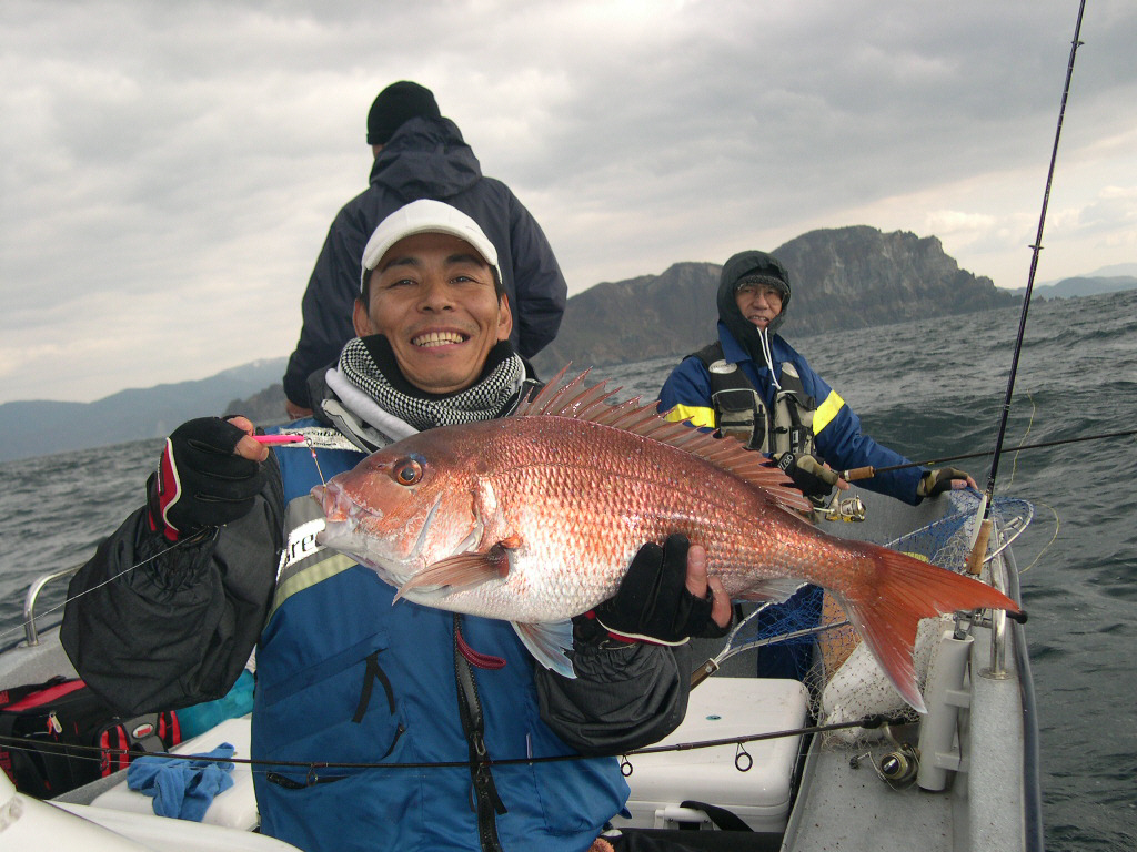 2週間ぶりに小泊から船が出せた。(^-^)/ ナンカ本当に久し振りと言う感じ。 沖に出たら、結構なヤマセが吹いていたが釣りには問題無し。 しかしちょっと当たりがとりづらい。 それでも、最初の当たりを確実に物に出来た。 グングン!と引く。 久し振りなのでてっきりチダイの引きと思ったらフグ。 でもかなり大きめなので良しとする。ハハハ(^-^)/ そしたら、右ィが竿を大きく曲げている。 「本物?」と聞くと大きくうなづいた。 上がったのは、紛れもなく60cm弱の真ダイ。 その内チダイと25cmから30cmくらいの小ダイ(チャリコ?)が入食いになった。 あちこちでバタバタと魚が暴れる音がしている。 魚探に反応が出たり消えたりするが、反応がなければ殆ど喰ってこない。 何回も船を移動させて反応の上に乗せると喰う。 私が20枚目を数えたとき、西海岸の釣り師竹谷さんからの電話。 「もう真ダイを10枚釣ったよ、こっち来たら!」 早速深場に向かう。 竹谷さんのいる場所までは遠いので、その手前の77mラインを流す。 早速の当たりがなんとトリプルヒットになった。 1枚バラシの2枚の60cmクラスをゲット。 その後もあたりは途切れずに71cmと70cmを含めて50cm以上の真ダイが14枚。 結局、40cm、35cmの真ダイや、25~35cmクラスのチダイと小ダイを含めて皆で85枚と言う釣りになった。 勿論深場に行かずにチダイを狙っていれば数は出ただろうが、大物は出なかったに違いない。 それでも85枚と言う数字は大漁である。 と言うのは、この前までは深場でもチダイが混じって相当数釣れていたのだが、昨日は殆ど釣れないで大きくても小さくても真ダイだけだった。 少しずつ海の中も冬に近づいているのだろう。 それにしても、相変わらず出れば釣れる西海岸だ。\(^o^)/ もう少し釣らせてもらいたいものだが、お天気の神様には勝てそうもない今日このごろである。(^-^)/ PR |