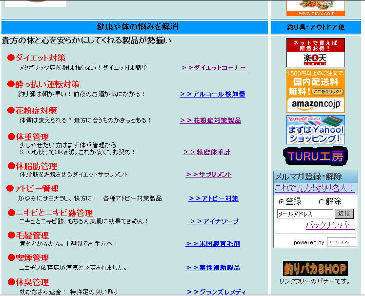 日本語では、「内臓脂肪症候群」といいます。(^-^)/ かなり気になっている人も多いと思う。 そういう自分もかなり気にはなっている。 「肥満症」「高血圧」「糖尿病」「高脂血症」と来れば 当てはまらないのは、「肥満症」だけ。 え?当てはまっている? いやいや、私は太り過ぎではなくただの太り気味なだけなんですって! それにしても 残りの3っつに自分がしっかりと当てはまっているのが怖い。(*_*;) だからという訳では無いが、 今日は機械による運動施設のある「青い森アリーナ」に行ってきた。 2時間ほど汗をかいてきた。 本当は最近船に乗ると足腰が痛くなってくるので、 これではイカン!と慌てて行っただけの話なのだが、 ついでに内臓脂肪を落としたいな。なんてね。(^o^)/~ ところで、内臓脂肪を落とすには何をすれば良いのだろう? まあ、歩いて、走っては誰でもやるが、 そのほかにどんなのをやればよいかだ。 ナンカ良い本を探さなければと思っている。(^-^)/ あっと、釣りバカSHOPの内臓脂肪を落とすサプリがあったんだ。 メタボリックシンドロームが心配な皆様ご安心下さい。 いいものがあるんですよ!\(^o^)/ 釣りバカSHOPお腹の脂肪ダイエットコーナー! (売ってる本人がすぐに思い出さないなんてね!\(><)/) それにしても、どれも効きそうですなあ。 どれか買って試して見ようと思ったが、どれにするか迷ってしまった。 だったら、アフェリエイトの金額の高いものだ!という事で、 モデリートだ!\(^o^)/ 話は変わるが、「発掘!あるある大辞典Ⅱ」が打ち切り。 当然のことだ。 納豆を慌てて増産した業者は偉い迷惑だ。 本当に情けないことだと思う。(*_*;) 釣りに関して言えば、釣った数や魚の大きさを偽る事と同じだからだ。 自分でも、絶対にこれだけは正確にすることを心掛けている。 これが1回でも嘘をついてしまったら、 自分の未来は無いものと思っている。 それが釣りバカ天国に来てくれる皆さんのの期待だと思うし、 釣りの報告には数と大きさは絶対に欠かせないと思っている。 又それを正確に出す事が自分の誇りでもある。(^-^)/ だから多く釣った報告をしたければ、 真剣に腕を磨いて、色々勉強して頑張って釣るしかない。 そして一緒の人にも上手になってもらって、 皆で一緒になって素晴らしい釣果を出したいと思っている。(^-^)/ でも腕を磨くのも、勉強や研究するのは何の苦痛もない。 むしろ楽しくてしょうがない。\(^o^)/ これが釣りをして幸せになるということかな?V(^0^)V これからも頑張るぞ!っと。(^-^)/ |
