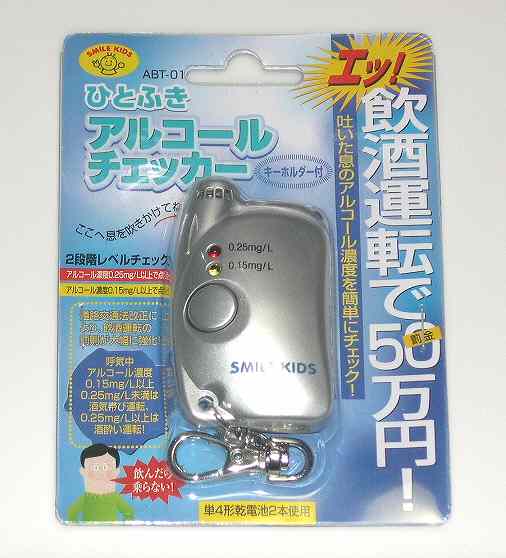 先日紹介したアルコール検知器ですが、 数値の出るアルコール検知器が見つかりました。(^-^)/ では実際に酒酔い運転と酒気帯び運転の違いは? というと、一応下のように分けられるのが現状のようです。 ★酒酔い運転⇒3年以下の懲役又は50万円以下の罰金。違反点数25点。 ★酒気帯び運転⇒1年以下の懲役又は30万円の罰金。 ①アルコ-ル保有量0.25以上の場合は違反点数13点 ②アルコ-ル保有量0.15以上0.25未満の場合は違反点数6点。 ホームページ「ほけん村」より ここで酒酔い運転と酒気帯び運転について はっきりとした数値の基準がないのは、 酒を飲んで運転をしていて、 正常な運転ができないと判断されれば酒酔い運転として扱われる。 つまり警察官が運転者の酩酊状態や動向から判断すると言う事です。 酒気帯びで検問で引っ掛かったことのある方なら判ると思いますが、 住所や本籍地、生年月日などを聞かれたり、 センターラインの上を歩かせられたりするのがそうです。 いずれ警察官によっては、かなりあいまいな判断になります。 ただそれを実際やるのは、最低0.25以上からの扱いになるようです。 だから数値がいくらかを知る事は 非常に大切な判断基準になるという事です。 先日までのアルコール検知器は 0.15と0.25まで濃度が上がってるかを検査するものでしたが、 今度のは、はっきりと数字が出るので使いやすくなっています。 いずれこんなものが必要ない酒の飲み方が出来れば 全く問題ないのですが、 釣り師は朝が早いのでどうしても前の日の夜の酒が気になるのです。 気になる、心配だ、それだけなら良いのですが、 自分でも解らない位のアルコールが残っていて、 そのために事故を起こしてしまったり、 検問に引っ掛かってその日の釣りに行けなくなったり、 罰金で欲しかった釣り道具が全てパーになることなどを考えれば、 本当に悔やんでも悔やみきれませんよねえ。 事故や罰金で無駄なお金が掛かったり 運転が出来なくなることを考えれば、 やはり一家に一台「アルコール検知器」でしょうか。\(^o^)/ こちらに紹介したものは安価なものですが, アルコール分解剤付きもあります。(送料無料) 性能に心配があれば、高いですがこんなのもありました。(^-^)/ PS:先日私が頼んだ検知器は、 売れすぎて配送が間に合わなくてまだ届いていません。 早く何時間でアルコールが消えるか?の実験をしたいです。(^-^)/ |