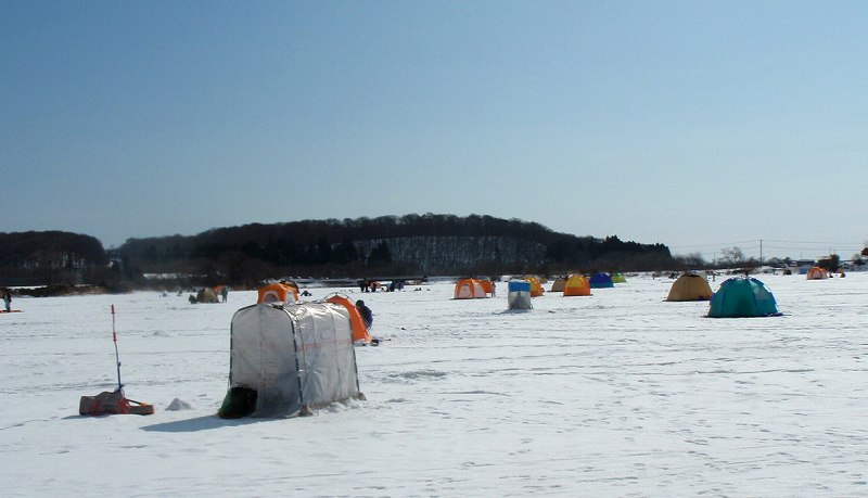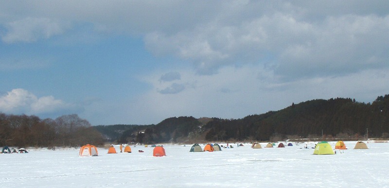 昨日の内沼風景です。(^0^)/~ 昨日はワカサギ釣りに孫娘のKanaと内沼に行って来ました。(^-^)/ 現地に9時半に着いたのですが、 満杯になっている駐車場の脇にやっと車を止められて、 いつもより少し多く歩いて沼に到着です。(^-^;) 氷の上は凄い数のテントや釣り師や家族で一杯です。(^0^)/ そしていつもの場所で釣り始めました。(^-^)/ 最初はパタパタと釣れて来て始まったのですが、 その後当たりが遠のき中々数が伸びません。(^-^;) で、仕方なく多分今まで始めての場所移動。 その場所でも殆ど同じような状態で昼過ぎで終了。 私が17匹でKanaが33匹の、 二人で50匹の釣果でした。(^0^)/~ つまり私はKanaにダブルスコアーを喰らってしまいました。(*_*;) こんな釣れない内沼おワカサギ釣りは初めてでした。(ToT); |